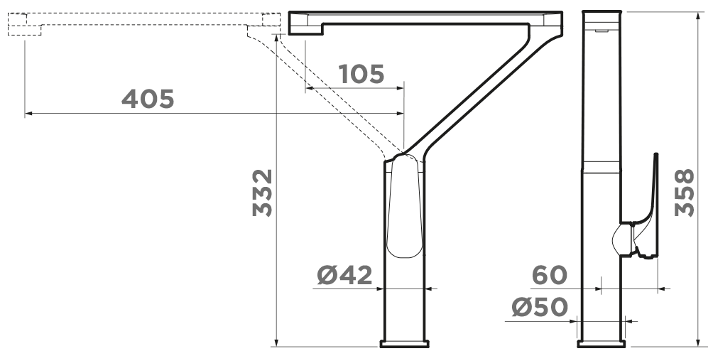Высокий поворотный излив и четкие прямые линии