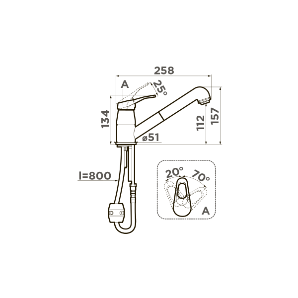 Смеситель для кухни Omoikiri Tateyama-S-C хром, вытяжной излив (4994115)