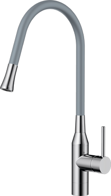 - Смеситель выполнен в ультрасовременном стиле и снабжен высоким поворотным шлангом, который при изменении формы всегда остается в устойчивом положении