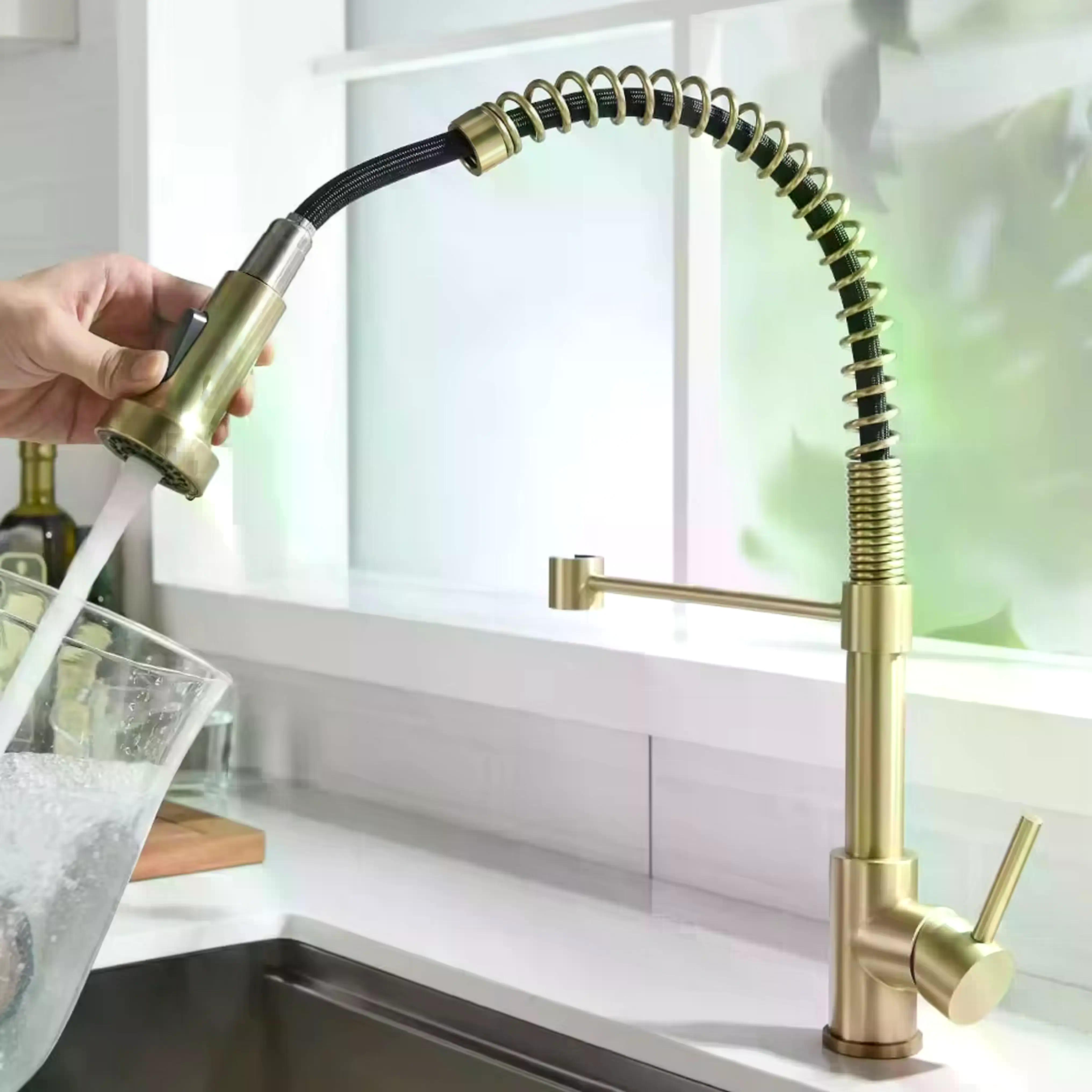 Смеситель для кухни Rea Colin с выдвижным изливом золото матовое (REA-B4821)