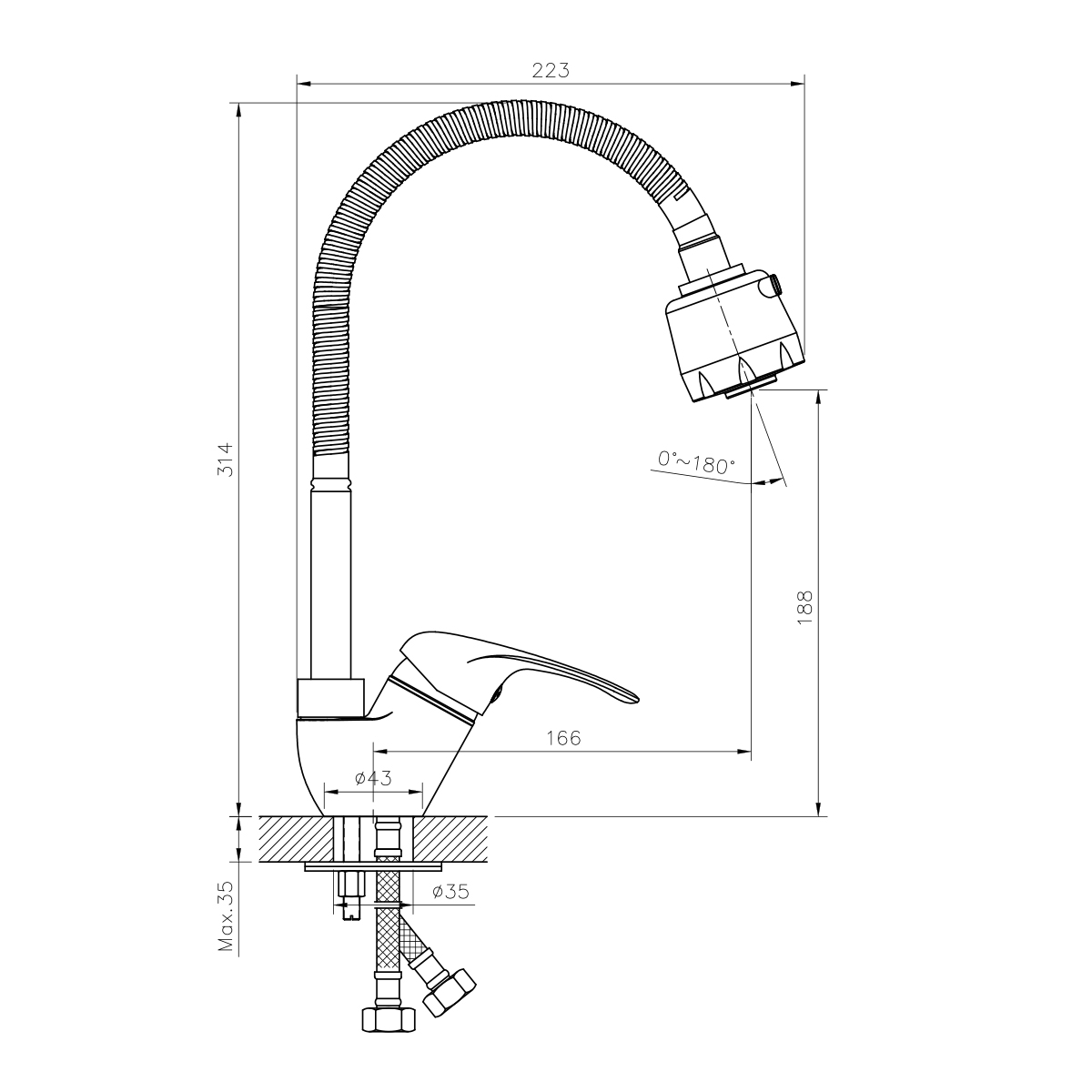 Смеситель для кухни с гибким изливом, 2 режима, высота излива 19 см, длина 17 см, латунь/хром