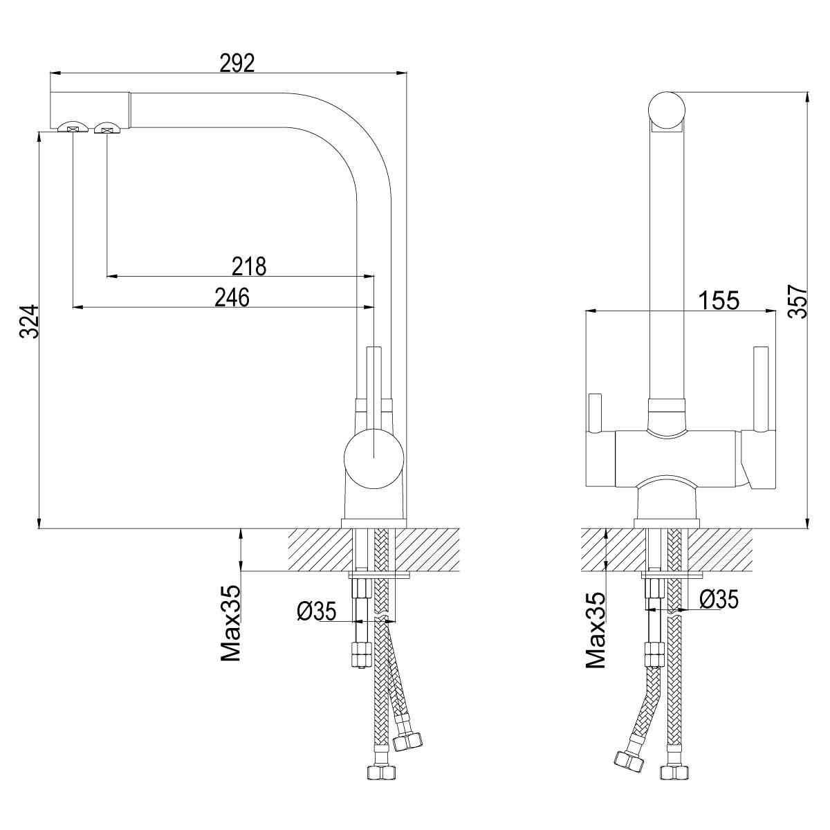 Смеситель для кухни Rossinka Z40-25 с переключателем на фильтр (Z40-25)