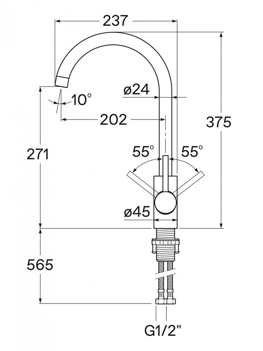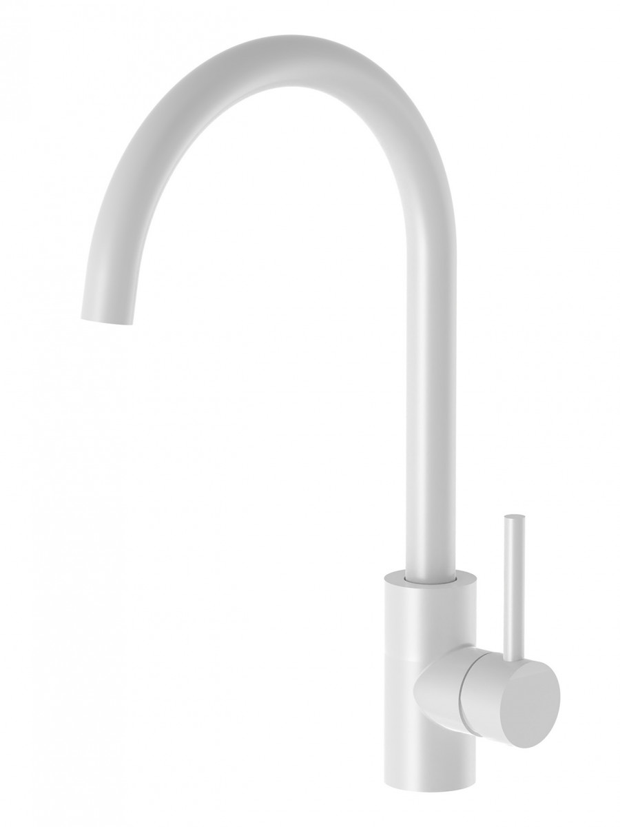 Смеситель Santek Риф для кухни, U-излив, нержавеющая сталь SUS304, цвет белый матовый Смеситель для кухни серии Риф — проверенная временем классика, сочетающая в себе удобную конструкцию и современный дизайн. Смеситель гармонично впишется в современный интерьер кухни, сделает рабочую зону комфортной и практичной. Материал изготовления - нержавеющая сталь марки 304 идеальна для производства смесителей за счет наличия необходимых свойств: высокая прочность, антикоррозийная стойкость, устойчивость к резким перепадам температур и гигиеничность. Аккуратная внешняя сварка элементов смесителя, использование надежных комплектующих обеспечивает долгий срок службы изделия, удобство и безопасность в использовании. Белый цвет смесителя гармонично дополнит светлый интерьер кухни или станет ярким акцентом в интерьере с преобладанием темных тонов. Смесители в белом цвете не только уникальны и необычны, но и более практичны. На них еле заметны известковые отложения, не видны капли и разводы от воды. Модель смесителя Риф в белом цвете подчеркнет вашу индивидуальность, а уход за ним не доставит лишних хлопот. Смеситель оснащен аэратором со сбалансированным расходом воды, насыщение струи воды воздухом делает поток ровным и мягким без брызг. Внутри смесителя установлен современный керамический картридж 35 мм, обеспечивающий плавный ход ручки смесителя, контроль и точность при выборе напора и температуры воды. Смеситель оснащен гибкими соединительными шлангами с увеличенной длиной 60 см. Внутренний шланг изготовлен по технологии сшитого полиэтилена (PEX) с увеличенным сроком службы до 50 лет, что делает гибкую подводку надежной и долговечной. Внешняя оплетка из нержавеющей стали марки 304 защищает от возможного разрыва и коррозии. Российский стандарт подключения шлангов с гайками G1/2" исключает возникновение проблем при установке смесителя. Благодаря системе крепления с двумя винтами смеситель можно легко и надежно установить на мойке даже в самых сложных условиях. Для монтажа смесителя потребуется только отвертка. Необходимый диаметр отверстия в мойке под смеситель - 33-35 мм.