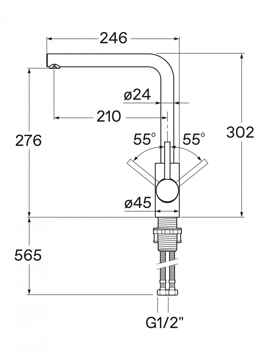 Смеситель Santek Риф для кухни, L-излив, нержавеющая сталь SUS304, цвет сатин Смеситель для кухни серии Риф — проверенная временем классика, сочетающая в себе удобную конструкцию и современный дизайн. Смеситель гармонично впишется в современный интерьер кухни, сделает рабочую зону комфортной и практичной. Материал изготовления - нержавеющая сталь марки 304 идеальна для производства смесителей за счет наличия необходимых свойств: высокая прочность, антикоррозийная стойкость, устойчивость к резким перепадам температур и гигиеничность. Аккуратная внешняя сварка элементов смесителя, использование надежных комплектующих обеспечивает долгий срок службы изделия, удобство и безопасность в использовании. Благодаря тщательной и качественной полировке поверхности смесителя достигается благородный и приглушенный цвет стали. Подобная матовая стальная поверхность обладает антибактериальными свойствами и менее требовательна к уходу. Модель смесителя Риф в цвете сатин никого не оставит равнодушным. Смеситель оснащен аэратором со сбалансированным расходом воды, насыщение струи воды воздухом делает поток ровным и мягким без брызг. Внутри смесителя установлен современный керамический картридж 35 мм, обеспечивающий плавный ход ручки смесителя, контроль и точность при выборе напора и температуры воды. Смеситель оснащен гибкими соединительными шлангами с увеличенной длиной 60 см. Внутренний шланг изготовлен по технологии сшитого полиэтилена (PEX) с увеличенным сроком службы до 50 лет, что делает гибкую подводку надежной и долговечной. Внешняя оплетка из нержавеющей стали марки 304 защищает от возможного разрыва и коррозии. Российский стандарт подключения шлангов с гайками G1/2" исключает возникновение проблем при установке смесителя. Благодаря системе крепления с двумя винтами смеситель можно легко и надежно установить на мойке даже в самых сложных условиях. Для монтажа смесителя потребуется только отвертка. Необходимый диаметр отверстия в мойке под смеситель - 33-35 мм.
