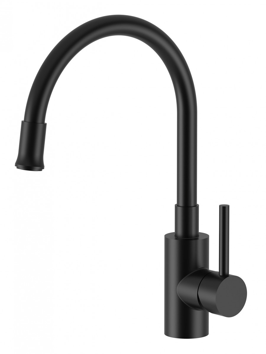 Смеситель Santek Риф для кухни, гибкий излив, нержавеющая сталь SUS304, цвет черный матовый Смеситель для кухни серии Риф — проверенная временем классика, сочетающая в себе удобную конструкцию и современный дизайн. Смеситель гармонично впишется в современный интерьер кухни, сделает рабочую зону комфортной и практичной. Гибкая конструкция излива фиксирует его в любом удобном положении над мойкой, добавляя функциональности на кухне. Материал изготовления - нержавеющая сталь марки 304 идеальна для производства смесителей за счет наличия необходимых свойств: высокая прочность, антикоррозийная стойкость, устойчивость к резким перепадам температур и гигиеничность. Аккуратная внешняя сварка элементов смесителя, использование надежных комплектующих обеспечивает долгий срок службы изделия, удобство и безопасность в использовании. Смеситель в черном цвете с матовой текстурой станет ярким акцентом вашей кухни и добавит интерьеру выразительности. Смесители в черном цвете великолепно сочетаются с различными фактурами — натуральным камнем и деревом, бетоном и стеклом, с глянцевой и матовой отделкой, прекрасно вписываются в самые разные стилевые решения. Модель смесителя Риф в черном цвете никого не оставит равнодушным. Смеситель оснащен аэратором со сбалансированным расходом воды, насыщение струи воды воздухом делает поток ровным и мягким без брызг. Внутри смесителя установлен современный керамический картридж 35 мм, обеспечивающий плавный ход ручки смесителя, контроль и точность при выборе напора и температуры воды. Смеситель оснащен гибкими соединительными шлангами с увеличенной длиной 60 см. Внутренний шланг изготовлен по технологии сшитого полиэтилена (PEX) с увеличенным сроком службы до 50 лет, что делает гибкую подводку надежной и долговечной. Внешняя оплетка из нержавеющей стали марки 304 защищает от возможного разрыва и коррозии. Российский стандарт подключения шлангов с гайками G1/2" исключает возникновение проблем при установке смесителя. Благодаря системе крепления с двумя винтами смеситель можно легко и надежно установить на мойке даже в самых сложных условиях. Для монтажа смесителя потребуется только отвертка. Необходимый диаметр отверстия в мойке под смеситель - 33-35 мм.