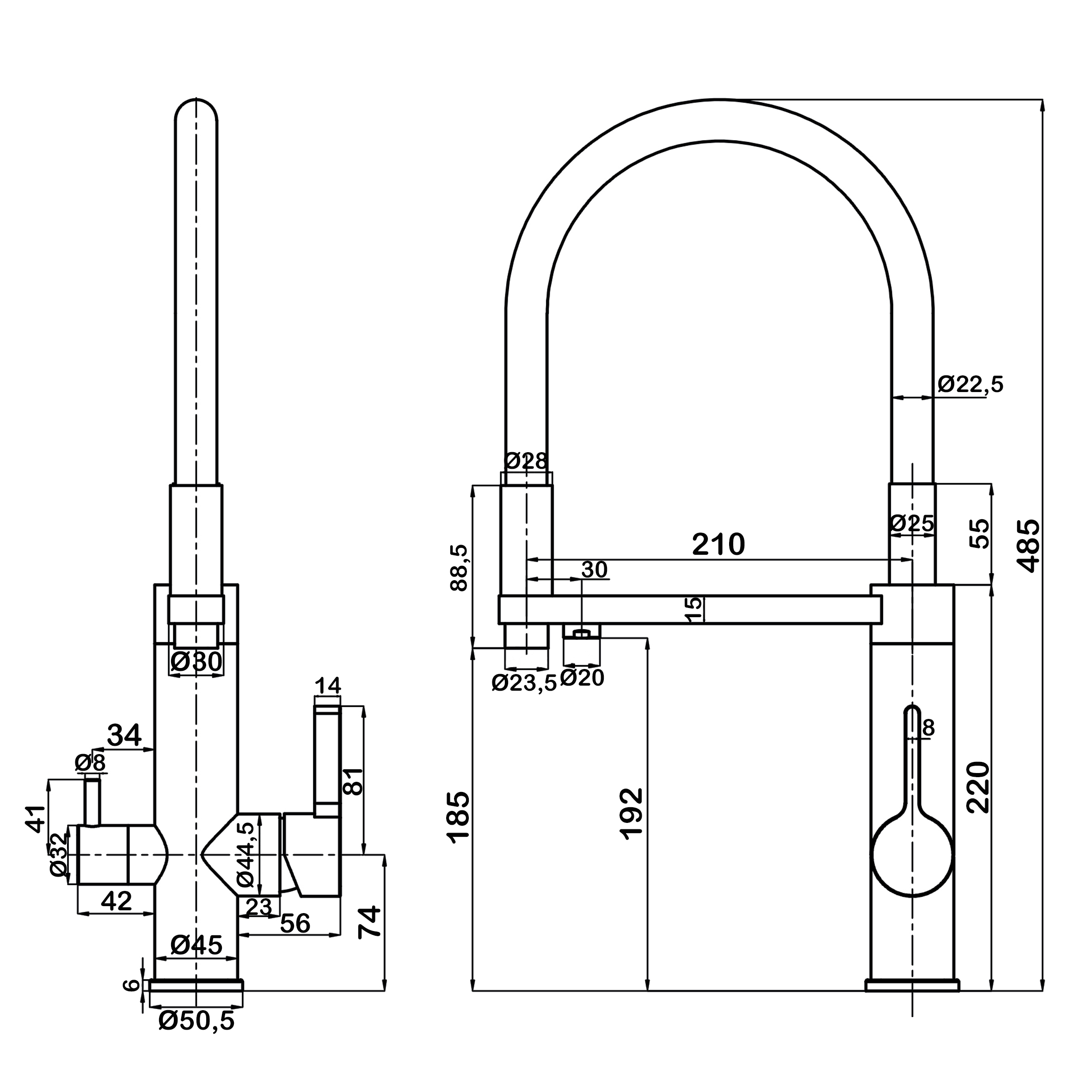Смеситель для кухни Swedbe Select с каналом для подключения фильтра с гибким изливом золото (8440GO)