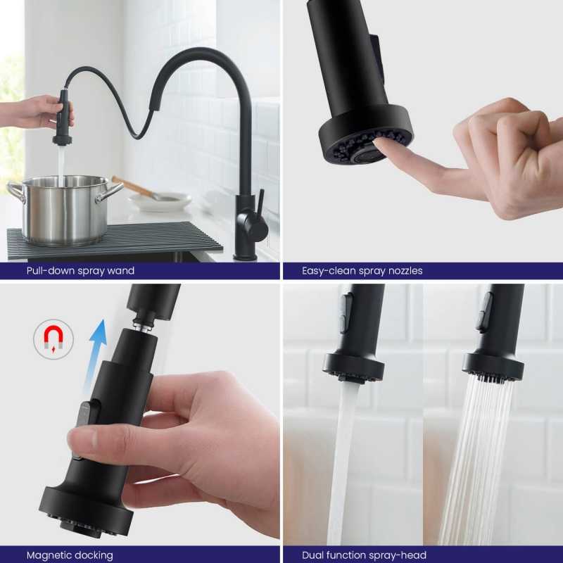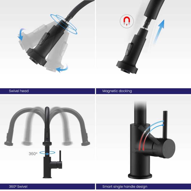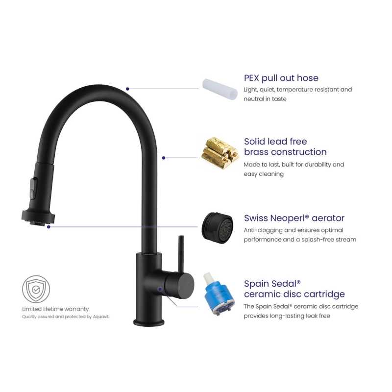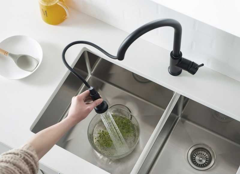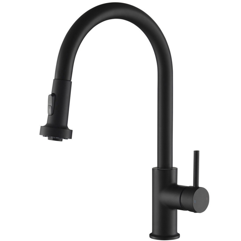 Смеситель для кухни Timo Saona черный, с выдвижным изливом (2316/03FL)