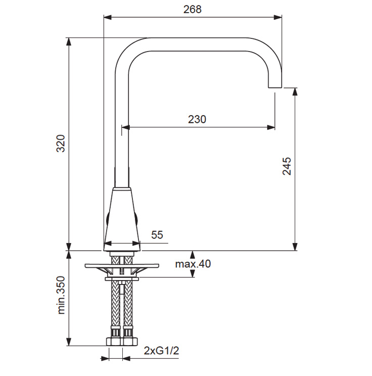 - Съемные шланги для подвода воды длиной 40 см, G 1/2.