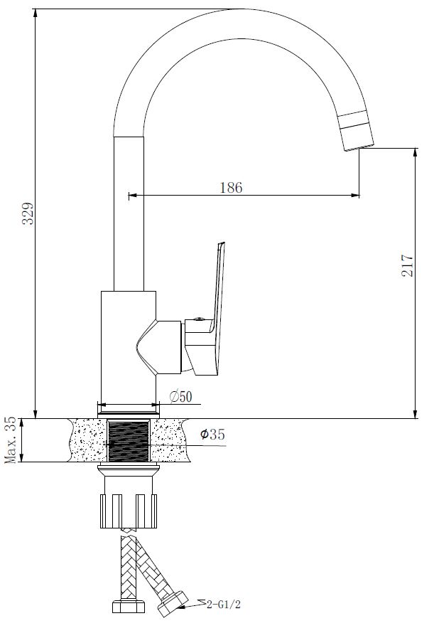Смеситель для кухни Voda Hill хром (HI 519)