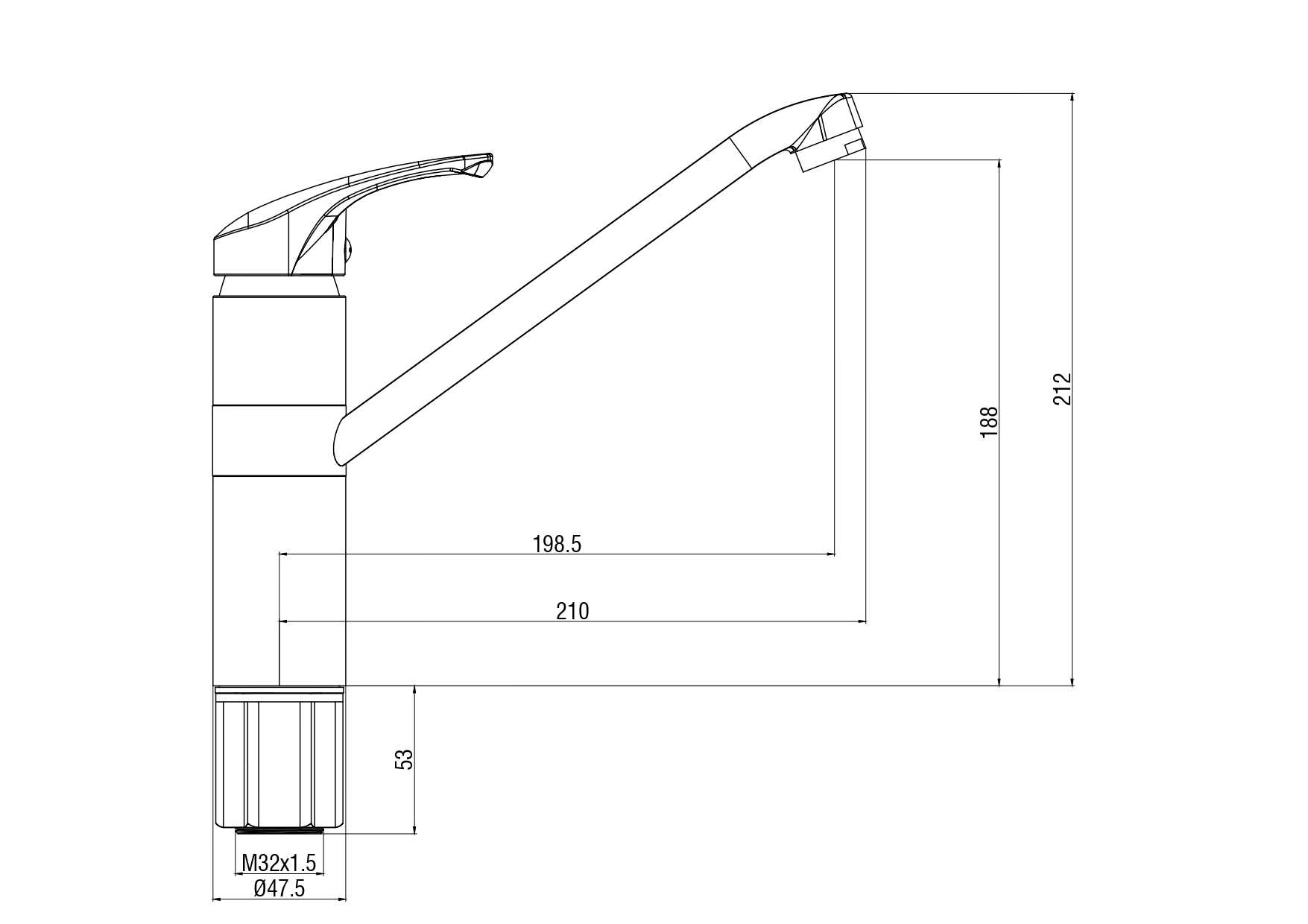 Длина излива, см: 19,8
