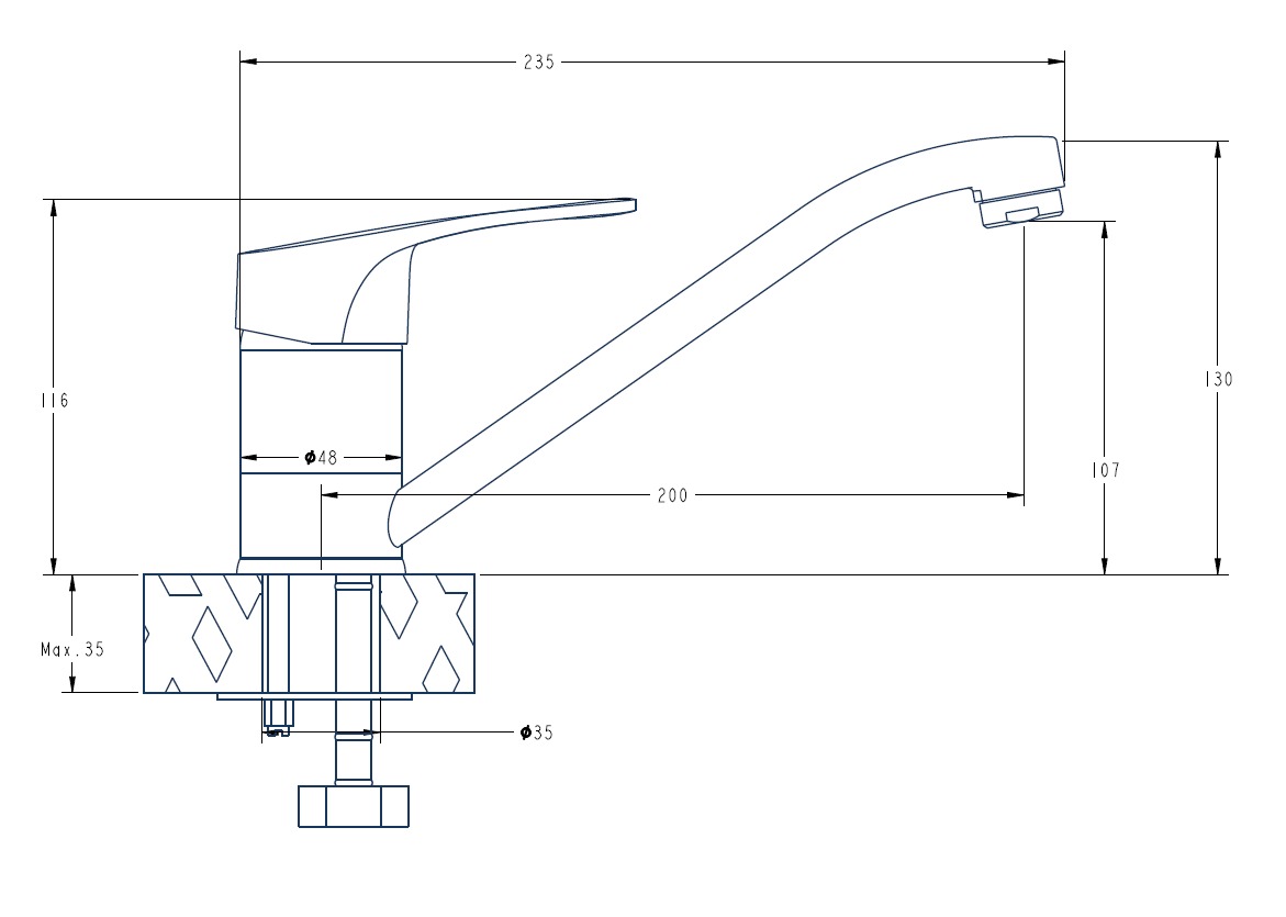 Комплектация: крепление "2 шпильки", гибкая подводка 35 см.