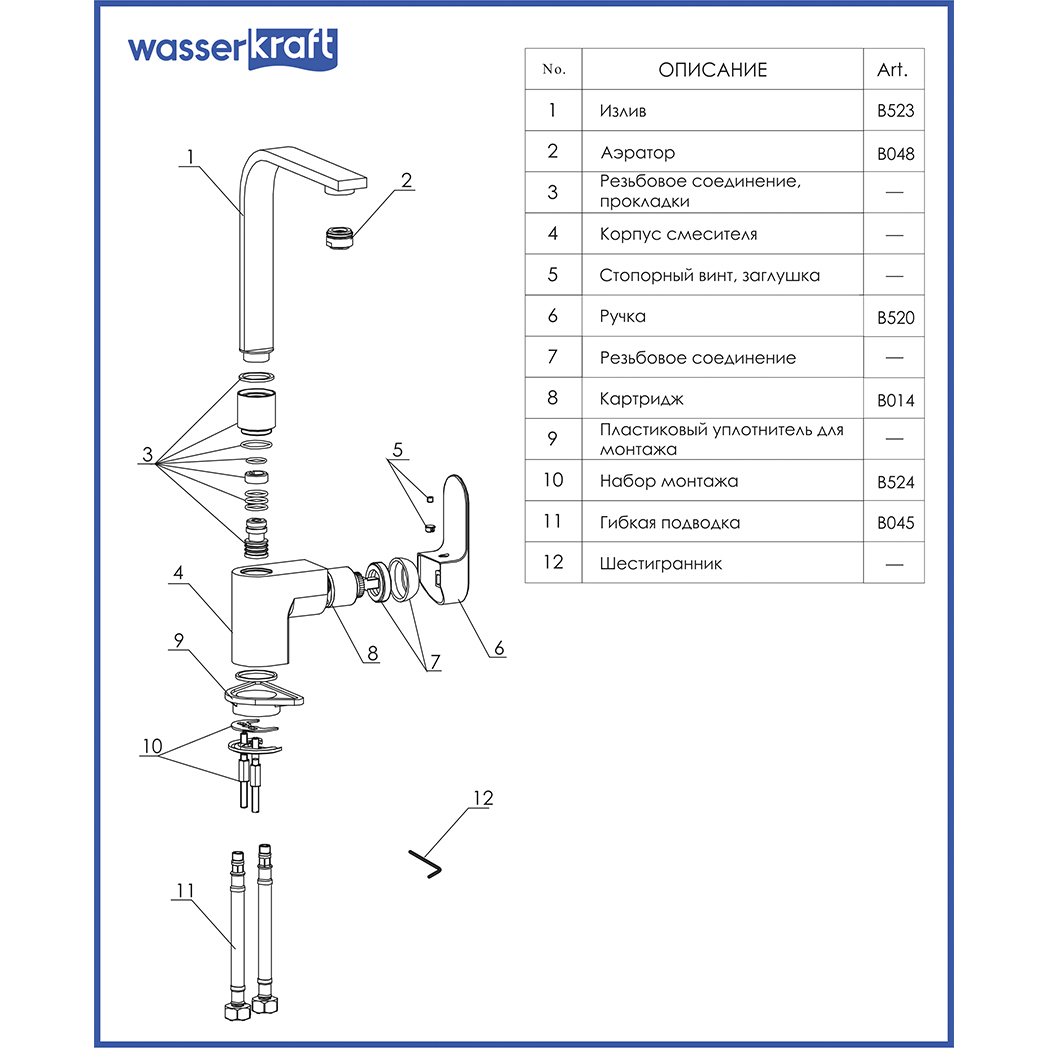 Смеситель для кухни WasserKRAFT Dinkel (5807)