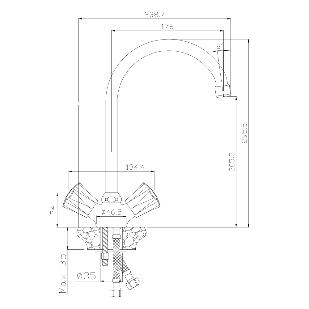 Хромированное покрытие Mirror shine обеспечивает прочное сцепление с материалом смесителя и гарантируя долгий срок службы и легкий уход.
