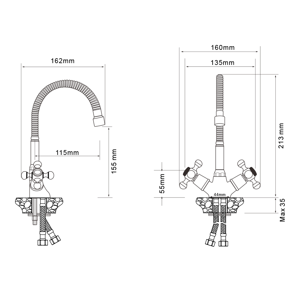 Смеситель для кухни Wesnaart Rassvet с гибким изливом хром (RAS02-180)