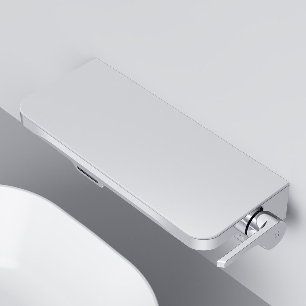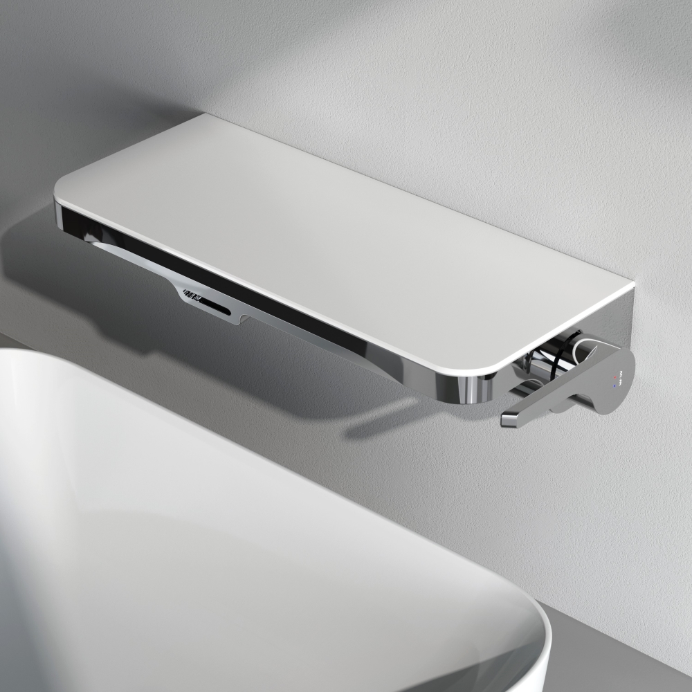 Еще больше полезного пространства: смеситель выполнен в виде вместительной полочки. Внушительный размер полки (35 см) позволяет хранить все любимые средства под рукой а эстетичный силуэт станет настоящим украшением современной ванной комнаты.