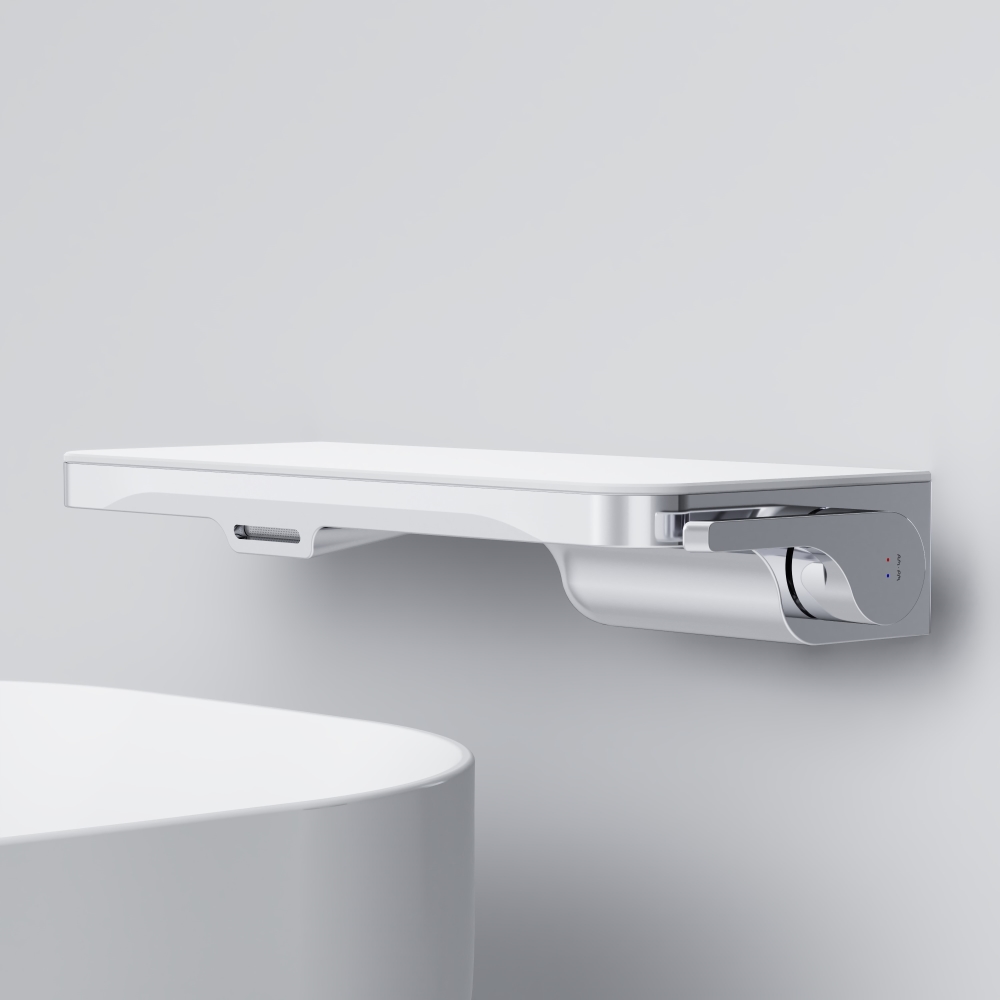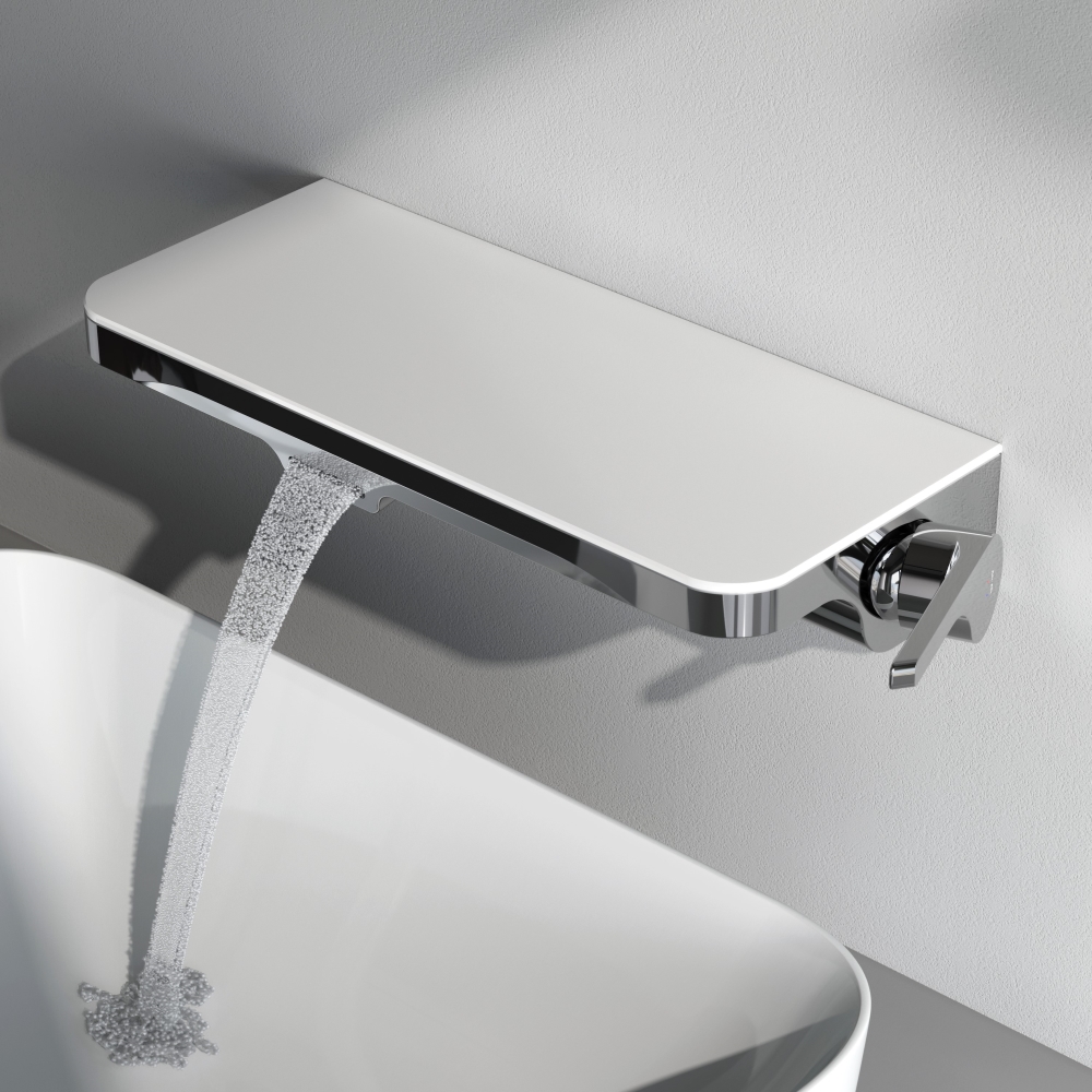 Экстраординарное пополнение самой функциональной коллекции в линейке AM.PM. Впервые в доступном сегменте – встраиваемый смеситель для раковины выполненный в виде полочки с каскадным изливом.