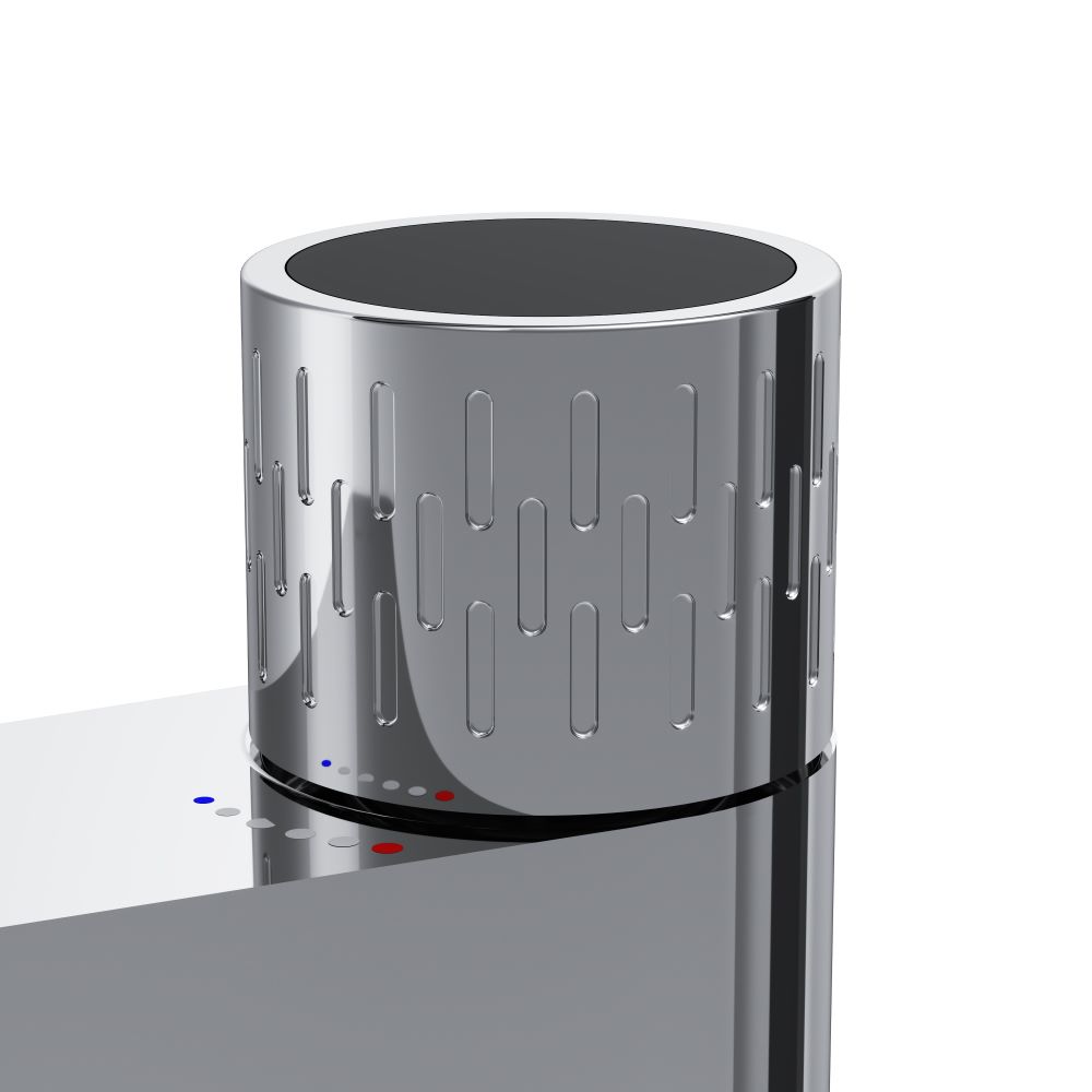 Прогрессивный высокотехнологичный картридж открывающийся с холодной воды обеспечивает оптимальную регулировку температуры а также позволяет выдерживать любые перепады давления. При управлении ручкой увеличивается температура и поток воды. Встроенный высокоэффективный малошумный гидрогенератор обеспечивает энергией встроенное оборудование для работы индикатора температуры благодаря чему не требуются дополнительные источники энергии.