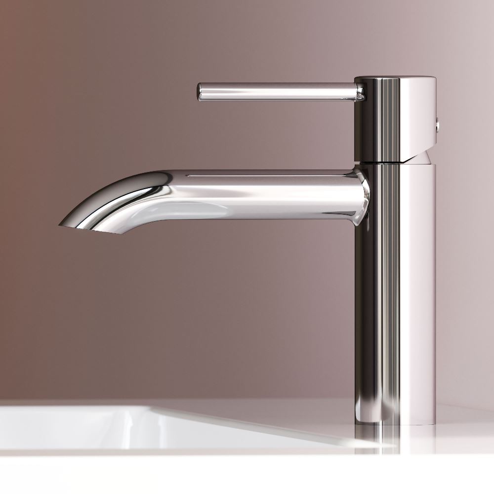Характерный излив — ключевая особенность коллекции. Выверенный изгиб в сочетании с чистой горизонталью излива подчёркивает архитектурную чистоту формы. Такое решение требует высокой точности производства и формирует цельный визуально безупречный силуэт.