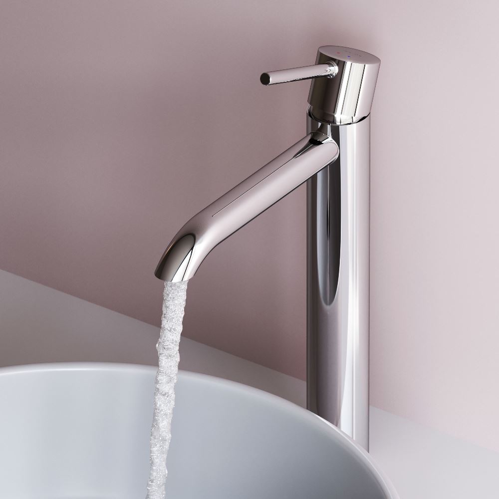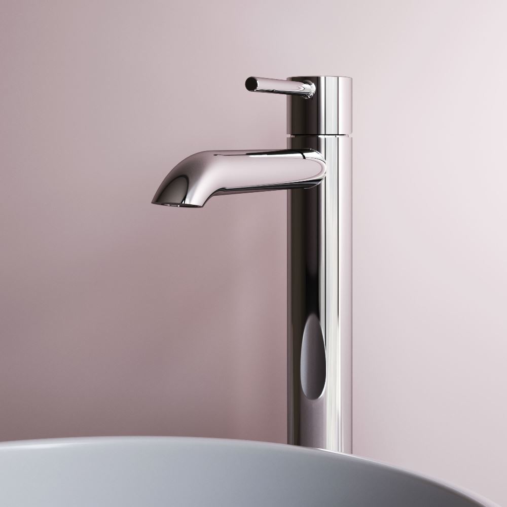 Характерный излив — ключевая особенность коллекции. Выверенный изгиб в сочетании с чистой горизонталью излива подчёркивает архитектурную чистоту формы. Такое решение требует высокой точности производства и формирует цельный визуально безупречный силуэт. Высота излива идеально подходит для использования с накладными раковинами.