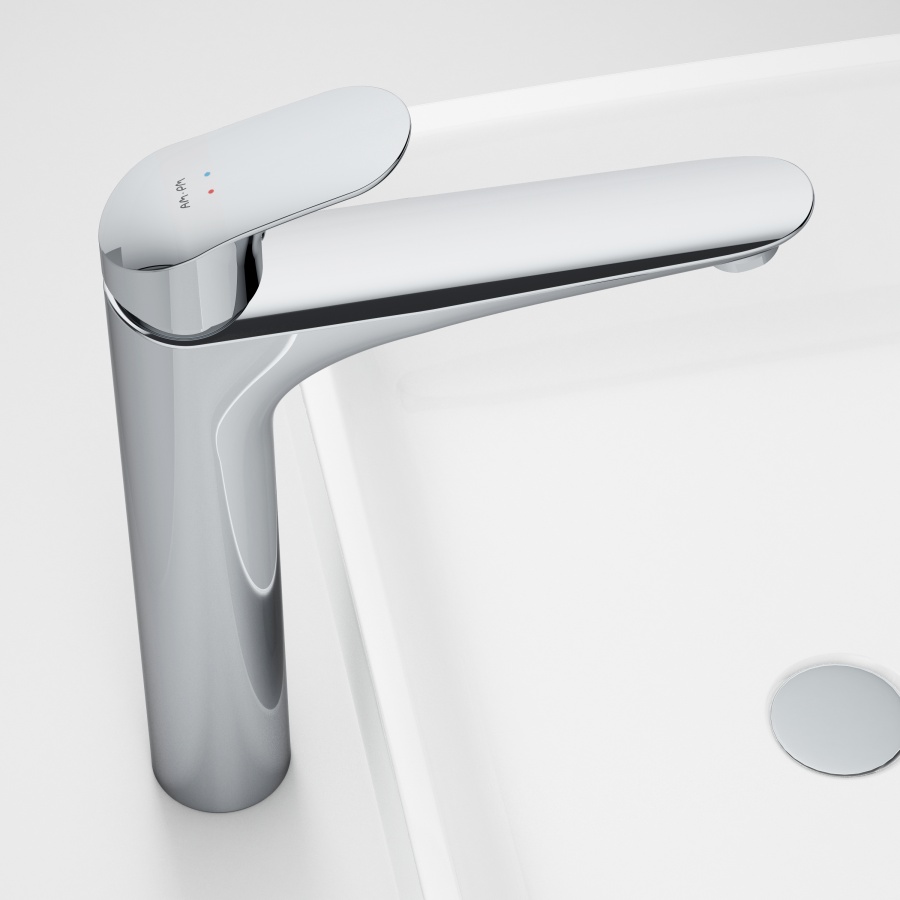 Впервые модный дизайнерский смеситель в доступном сегменте: ультрамодный стиль Dynamic Organic — природные формы в сочетании с четкими линиями, доведенными до совершенства человеком. Дизайн, в котором учтены все детали: благодаря уникальной форме ручки капли воды скатываются, предотвращая образование налета, а не высыхают на поверхности. Эксклюзивная разработка: специально спроектированный для АМ.РМ керамический картридж SoftMotion 35 мм обеспечивает оптимальную регулировку температуры, а также позволяет выдерживать любые перепады давления. Высокий излив придает смесителю утонченный вид и идеально подойдет для раковины с глубокой чашей, а благодаря обширной зоне движения ручки управлять температурой воды еще проще.