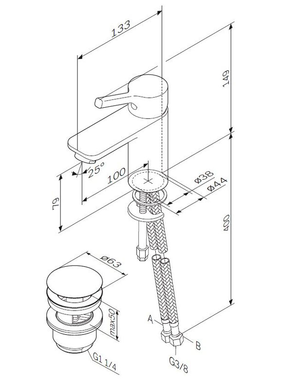 Смеситель для раковины AM.PM X-Joy с донным клапаном (F85B82100)