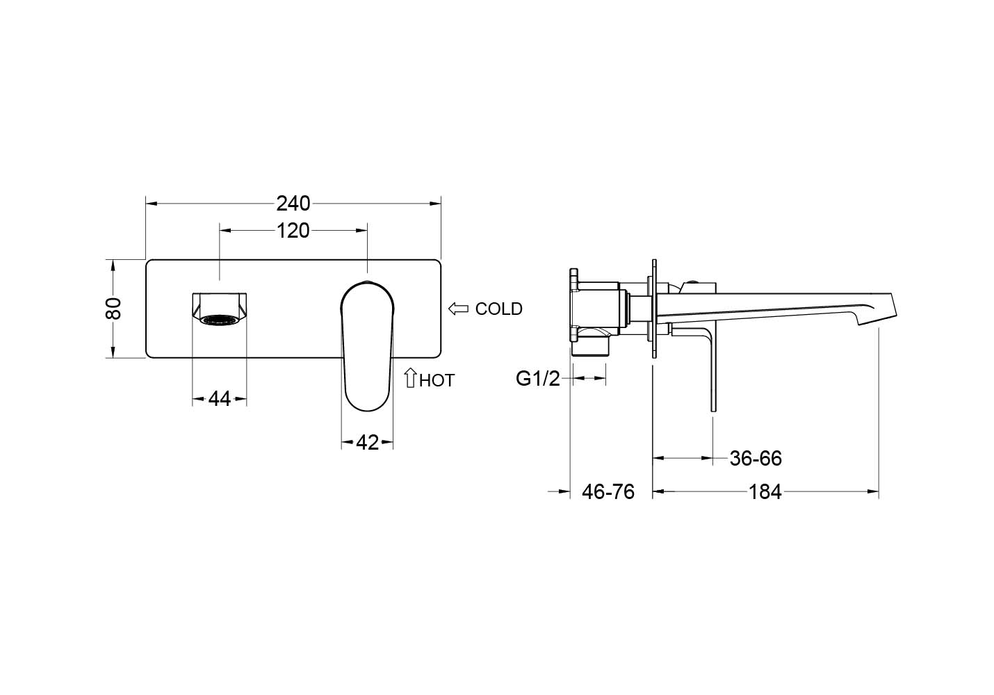 Смеситель для раковины Aquatek Оберон настенный (внешняя и скрытая часть) шлифованное золото (AQ1213BG)