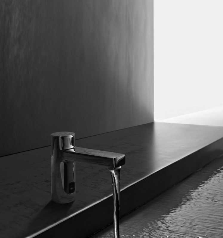 - Сенсорный смеситель включает поток воды за счет фотоэлемента