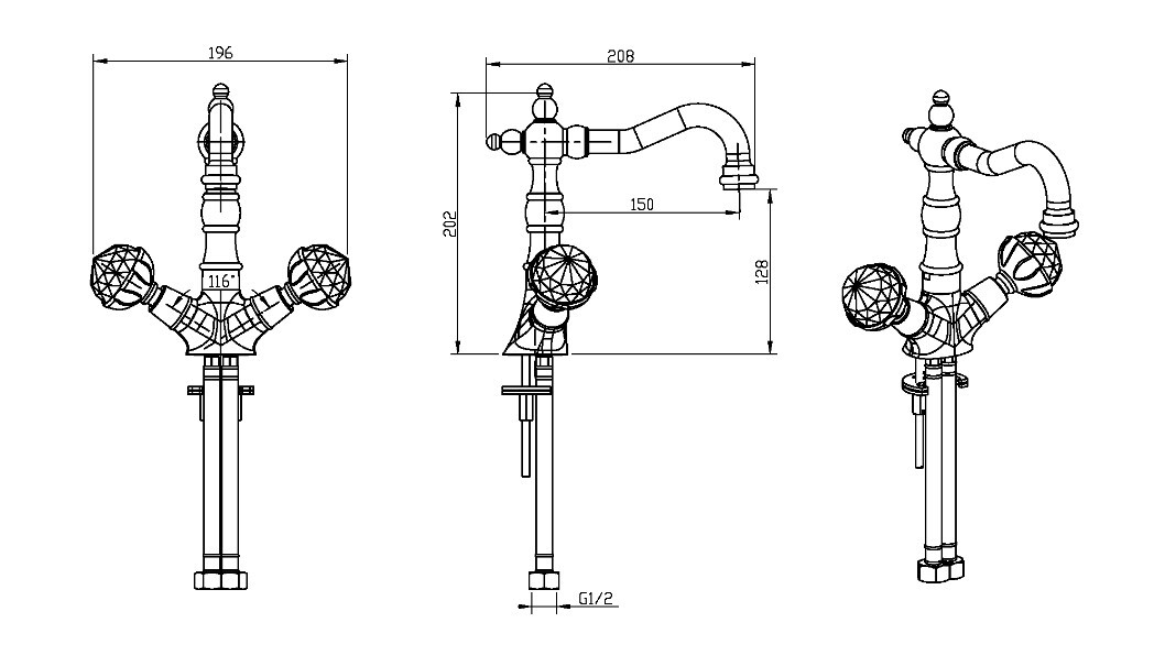 Смеситель для раковины Boheme Brilante Presente CR (хром) (352)