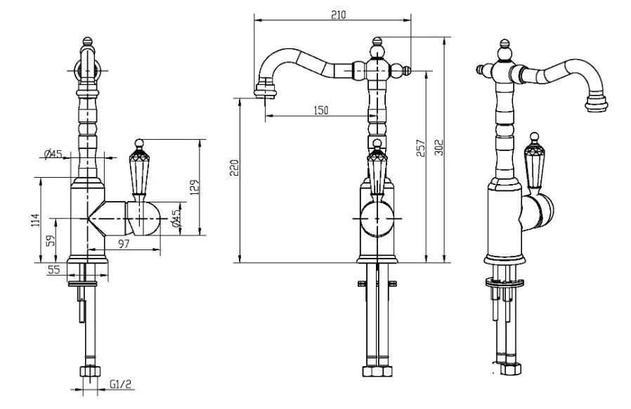 Смеситель для раковины Boheme Brilante Ripresa CR (хром) (342)