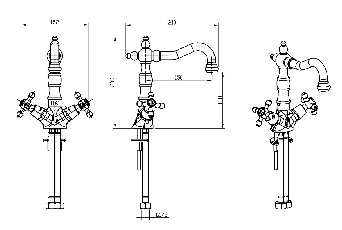 Смеситель для раковины Boheme Royal Cristal бронзовый (312-Royal/CRST Black)