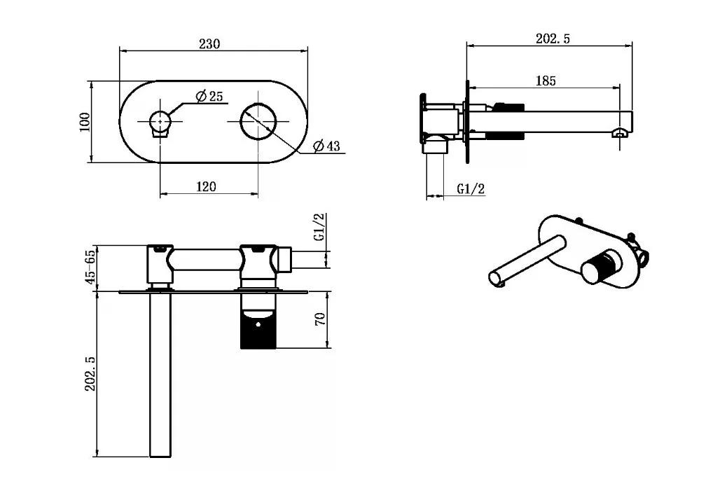 Состав поставки: смеситель (внешняя и внутренняя часть), излив