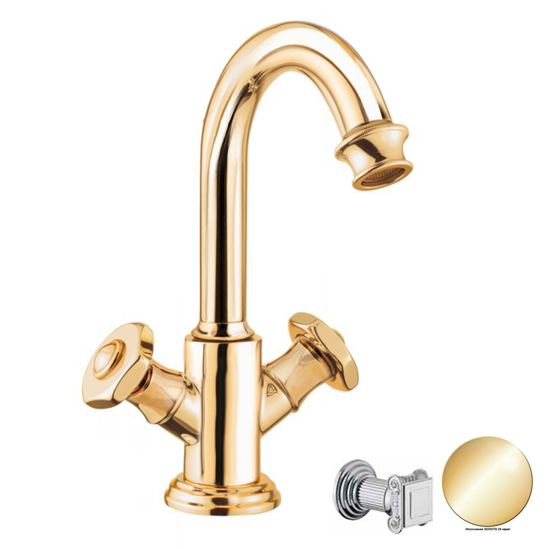 Смеситель для раковины Cezares Aphrodite золотой, ручки квадратные - металл (APHRODITE-LS2-03/24-O)