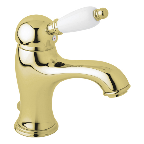 Смеситель для раковины Cezares Elite золотой, ручка рычаг - белая (ELITE-LSM1-03/24-Bi)