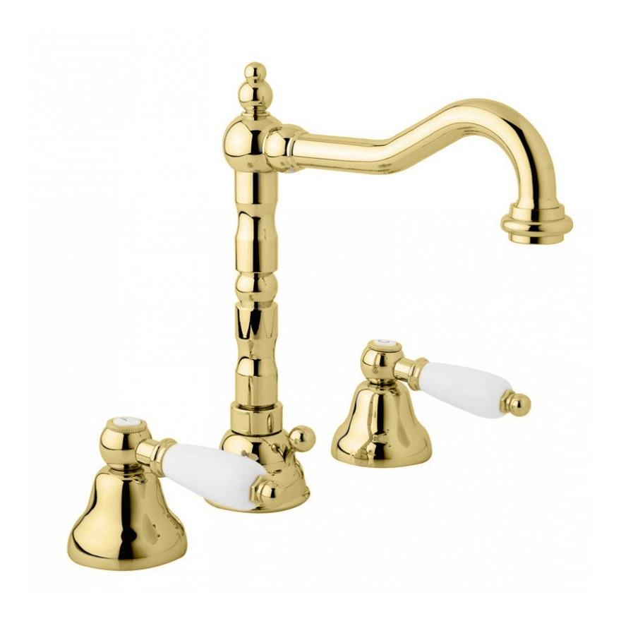 Смеситель для раковины Cezares First золотой, ручка рычаг - белый (FIRST-BLS2-03/24-Bi)