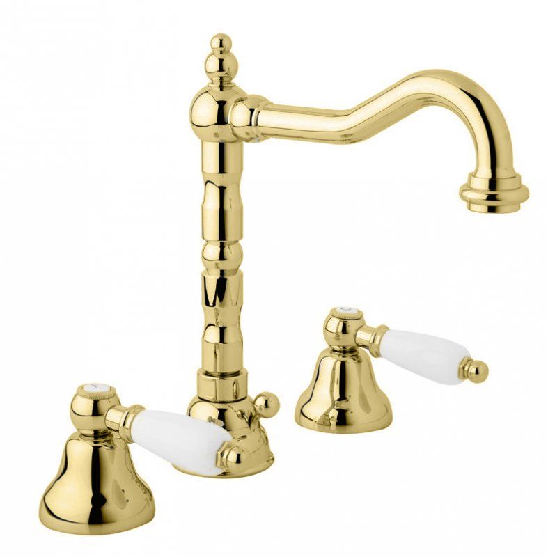 Смеситель для раковины Cezares First золотой, ручка рычаг - белый (FIRST-BLS2-03/24-M)