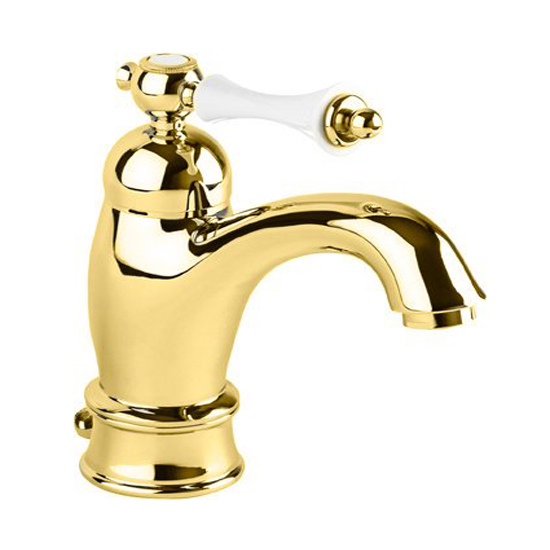 Смеситель для раковины Cezares Margot золотой, ручка рычаг - белая (MARGOT-LSM1-A-03/24-Bi)