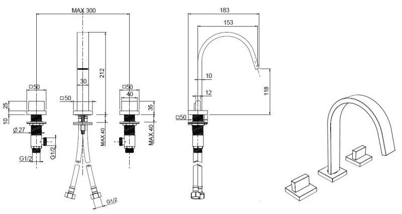 Смеситель для раковины Cezares Unika (UNIKA-BLS2-02-W0)