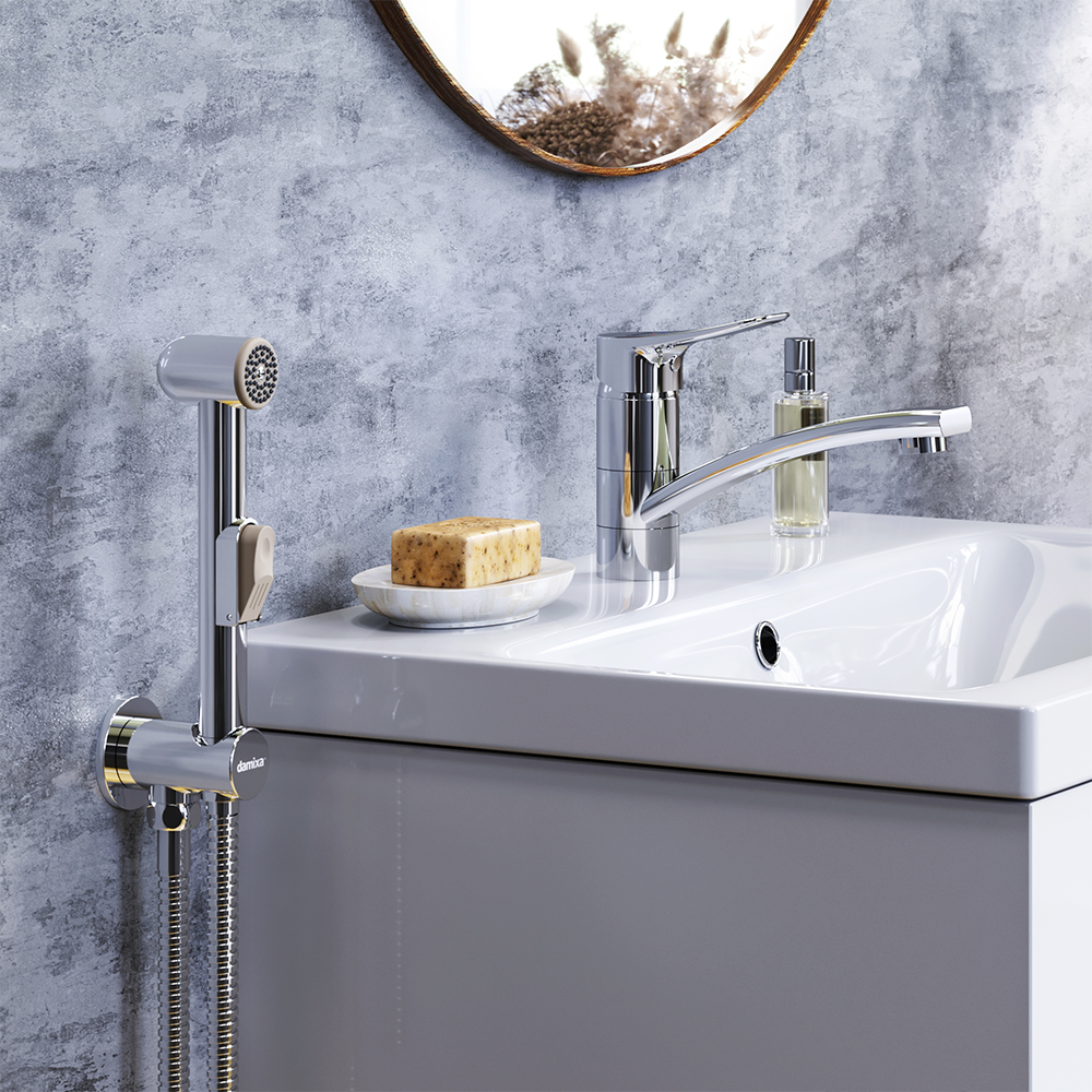 Минималистичный дизайн коллекции Jupiter находит отражение в простых геометрических формах и плавных линиях. Универсальное решение: смеситель с поворотным изливом обеспечивает дополнительный комфорт при использование а гигиенический душ делает данный набор еще и функциональным.