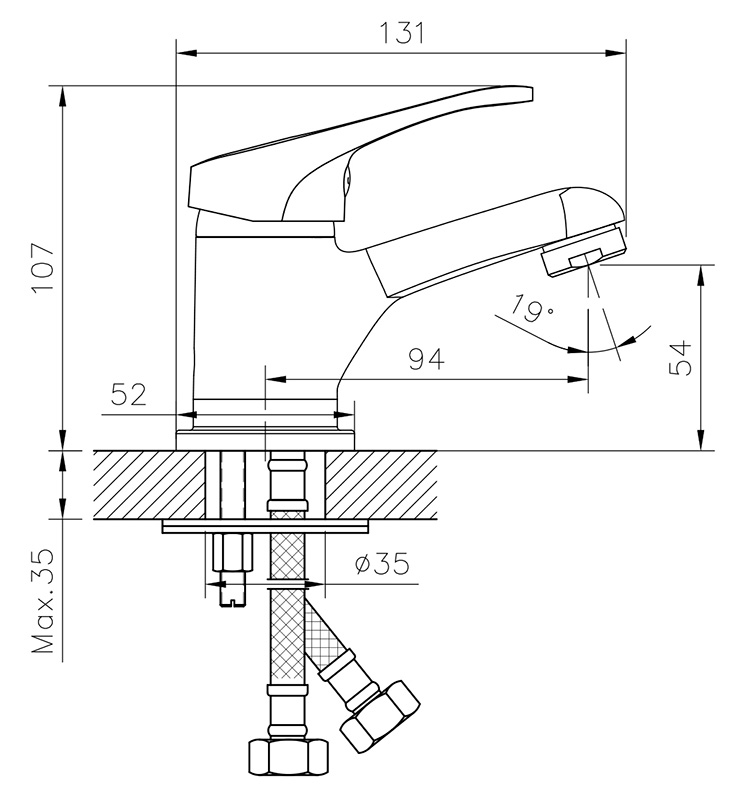 Смеситель для раковины монолитный, высота излива 5,5 см, длина 9,5 см, хром