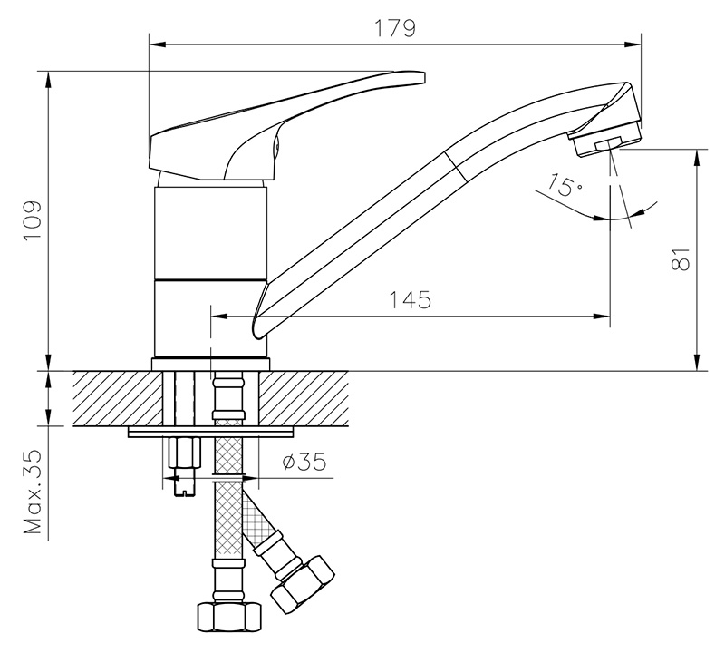 Смеситель для раковины с поворотным изливом, высота излива 8 см, длина 14,5 см, хром