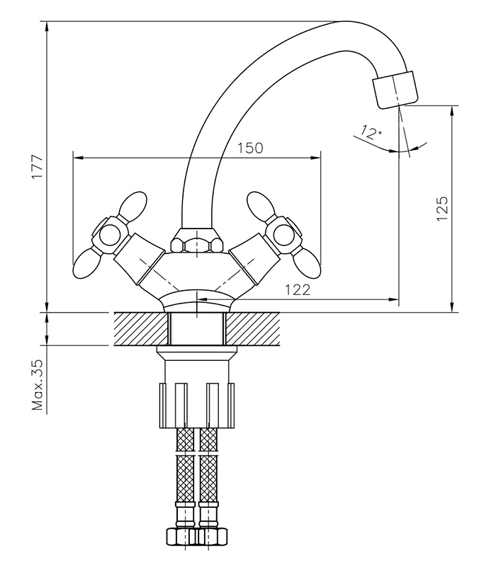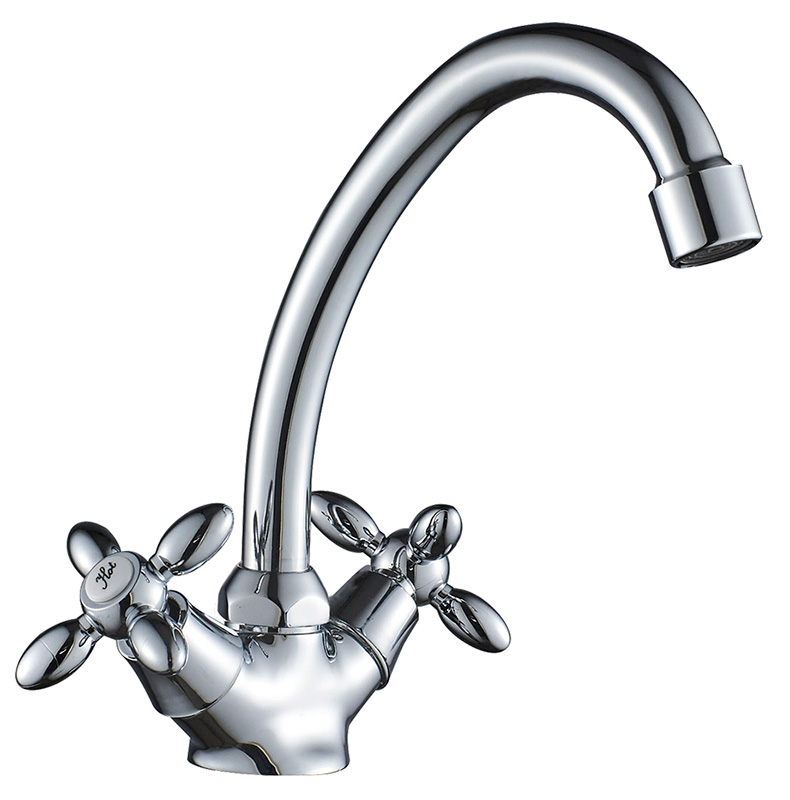 Смеситель для раковины с поворотным изливом, вентильный, высота излива 12,5 см, длина 12 см, хром