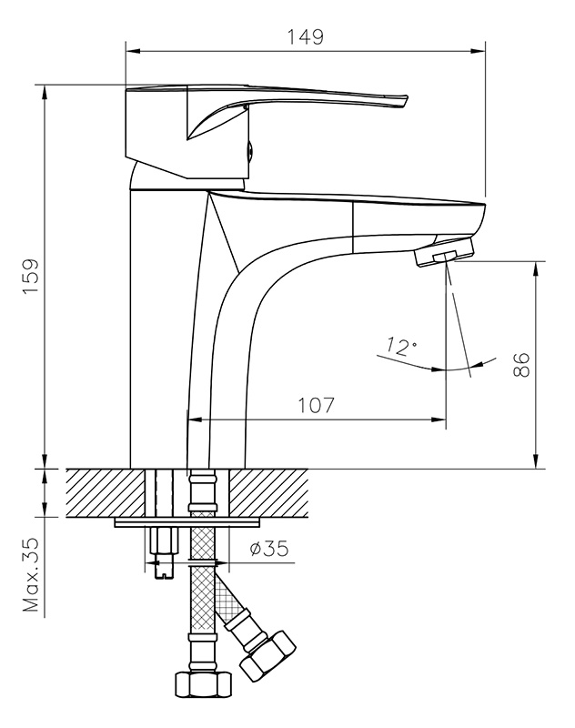 Смеситель для раковины монолитный, высота излива 9 см, длина 11 см, хром
