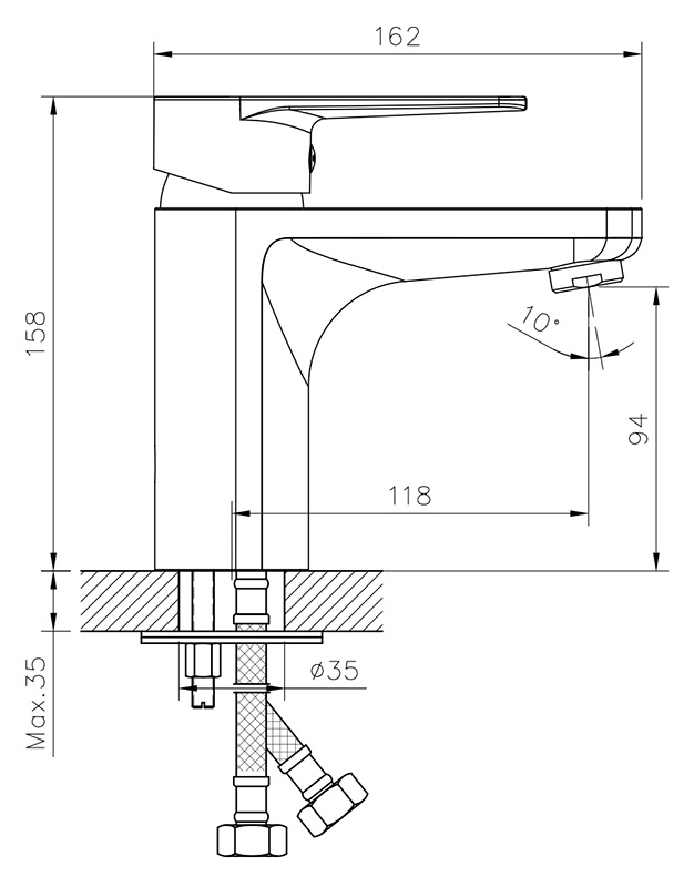 Смеситель для раковины монолитный, высота излива 9 см, длина 12 см, хром