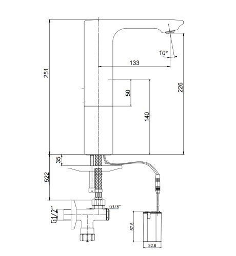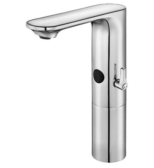 Электронный смеситель для раковины (хром). Со смешиванием. Работает от батареи 6V. В комплект поставки входят угловые краны с фильтром. Умная система очистки от извести аэратора. Максимальный расход воды при давлении 3 бар составляет 5 л/мин. Регулировка температуры на корпусе смесителя.