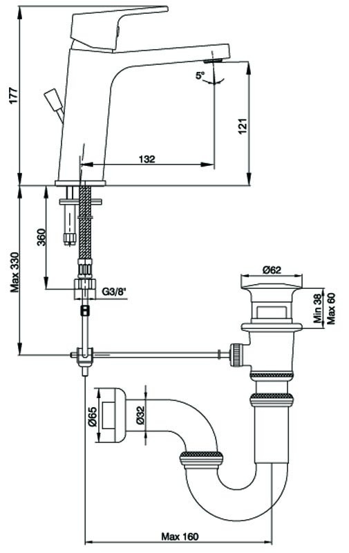 Смеситель для раковины E.C.A Tiera с донным клапаном (102188012EX)