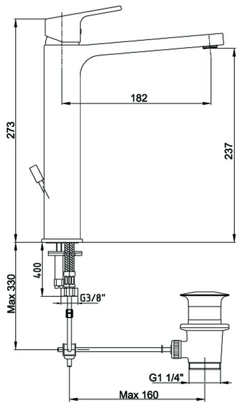 Смеситель для раковины E.C.A Tiera с донным клапаном (102188014EX)