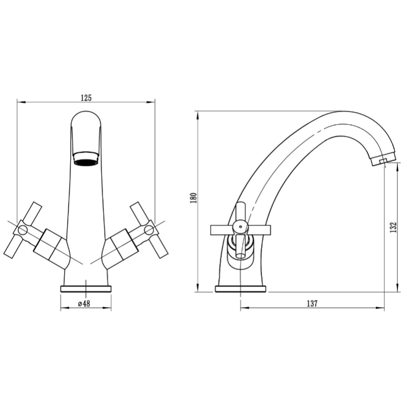 Изготовленный из нержавеющей стали смеситель станет настоящим украшением вашего интерьера. Стационарный излив длиной 13,7 см и механизм кран-буксы с вращением на 180 градусов обеспечивают удобство и долговечность.