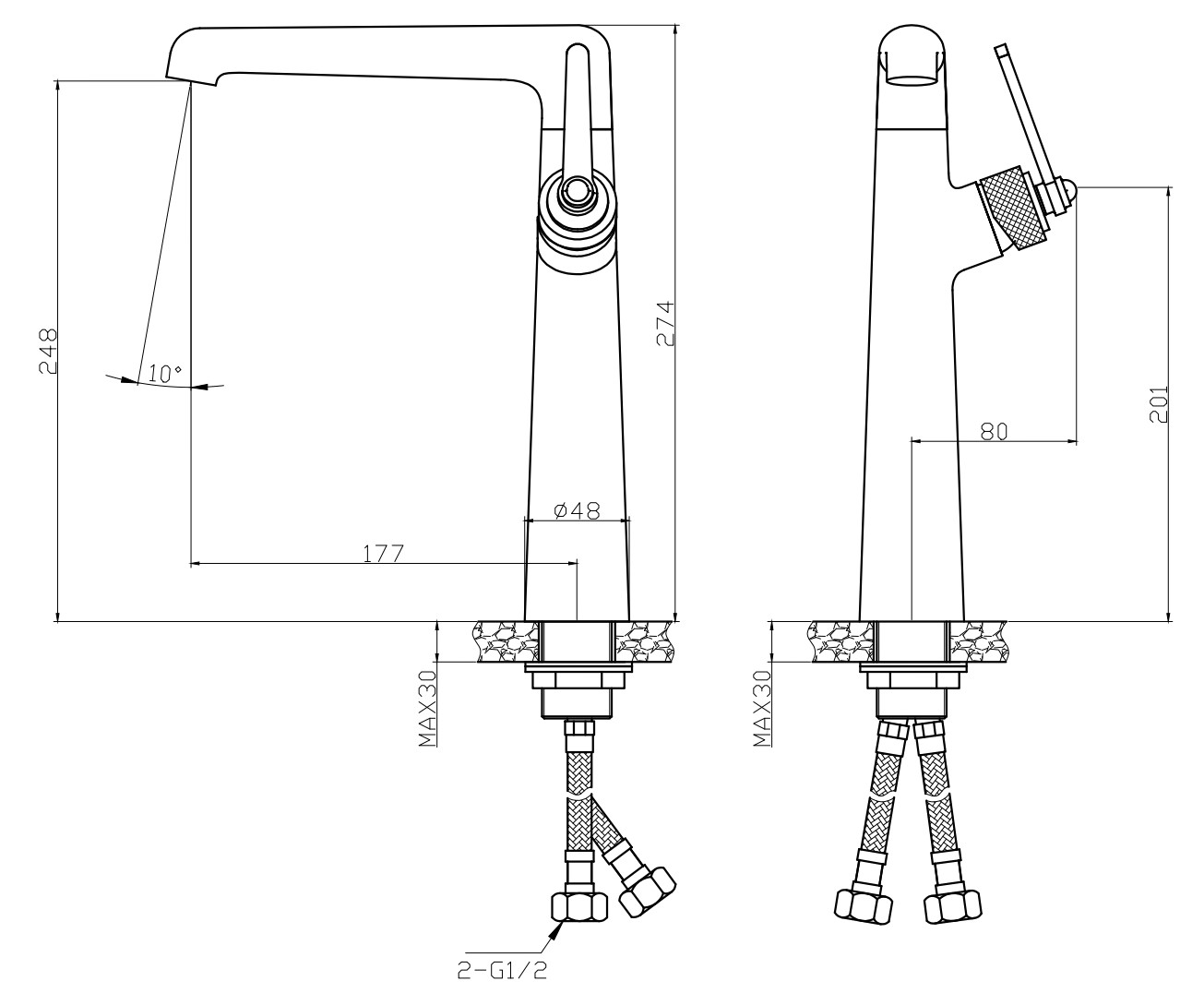 Высота излива, см: 25