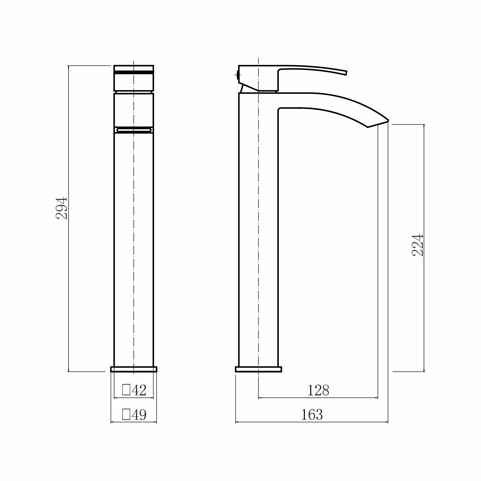 излив H=224 мм