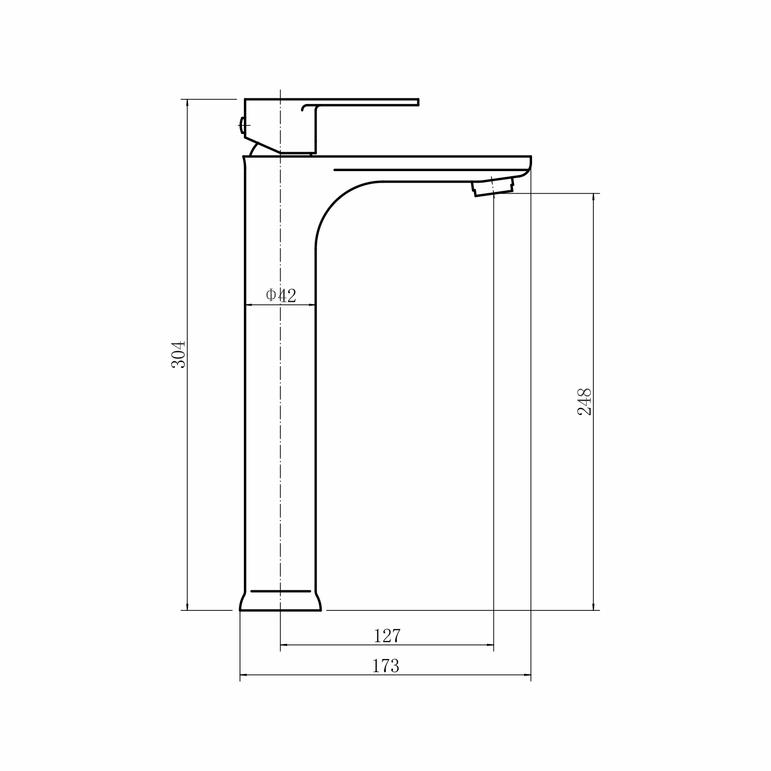 Смеситель для умывальника высокий, H=304 мм